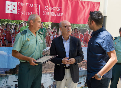 El capitán Samuel Santana y otros miembros de la Guardia Civil, han recogido una placa de la Volta a Castelló, que les ha sido entregada por el diputado de Deportes, Luis Martínez, en presencia del presidente de la Federación de Ciclismo de la Comunidad Valenciana, Amadeo Olmos, y del director de organización de la Volta a Castelló, José Cabedo.